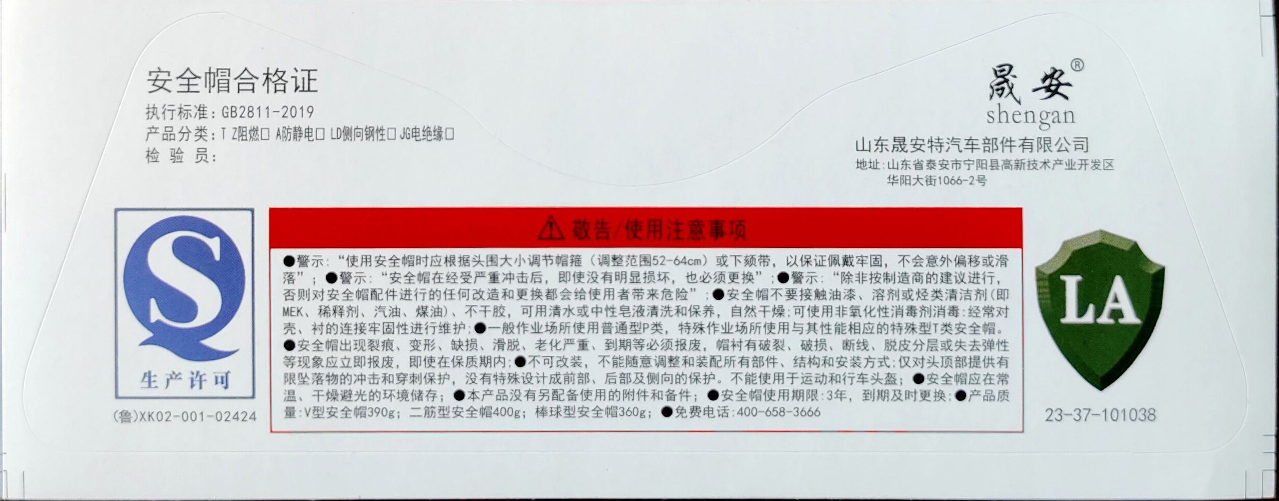 3、执行标准:GB2811-2019