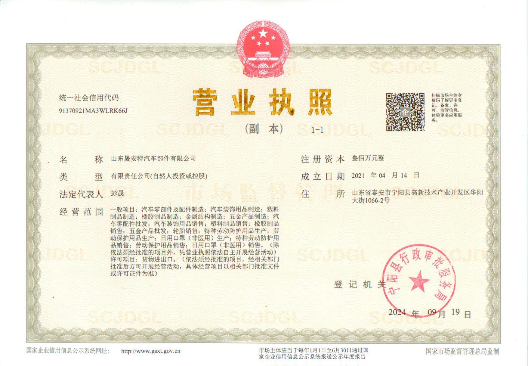 6、公司名称:山东晟安特汽车部件有限公司